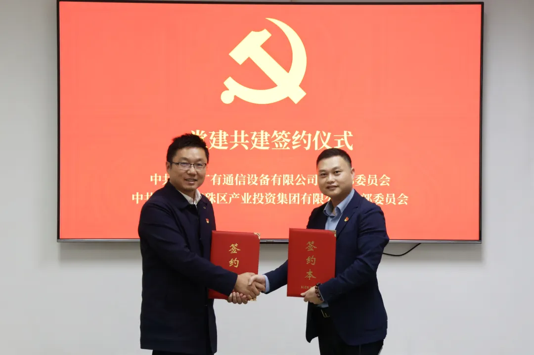活动伊始,党建共建签约仪式隆重举行。广有通信党总支书记、总经理邓懿与海珠产投集团党支部书记、董事长谢成分别代表双方党组织签署共建协议,明确未来在党建引领、资源共享、业务协同等方面的合作方向。